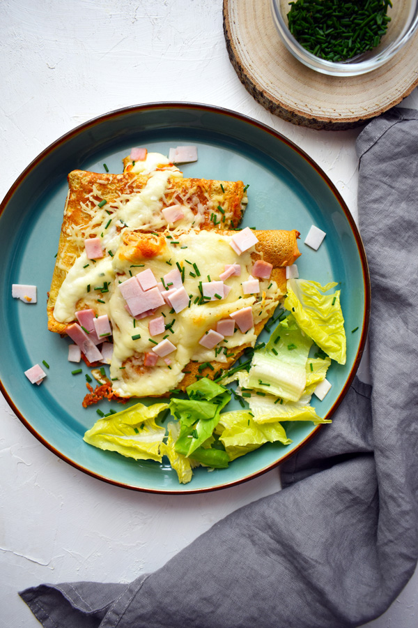 - Tarragon sweet potato cream soup with crispy breadsticks and ham