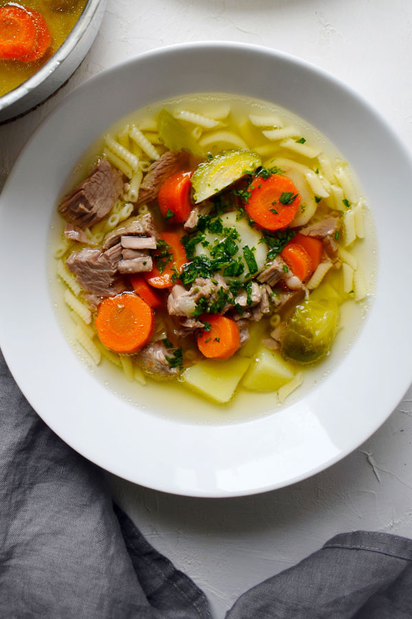 Beef broth is rich in vitamins and minerals. Beef is fattier and more substantial than poultry, but if you need strength and energy (for example, if you are ill or feeling weak), then a long-simmered beef broth is the best choice. It strengthens the immune system and is also good for muscles and joints.