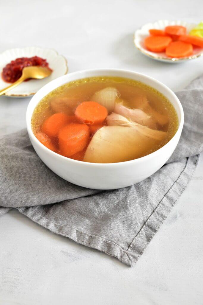 Az igazi tyúkhúslevesnek nincsen párja. Azonban van úgy, hogy nem akarok egy egész tyúkot megvenni, mert tudom, hogy minden része nem fogyna el. Tyúk helyett a csirkecomb is tökéletes választás. Kicsivel talán zsírszegényebb is, mint a tyúk. Fehérje szempontjából pedig ideális a testépítéshez, diétához. A combon lévő bőr és a csontja szépen megadja azt az ízt, amit egy húslevestől vár az ember. Bátran beleteheted a maradék zöldségeket is. A tésztát viszont mellőznöd kell, ha igazán diétásan szeretnéd elkészíteni. Ne aggódj, így is nagyon finom lesz! 🙂