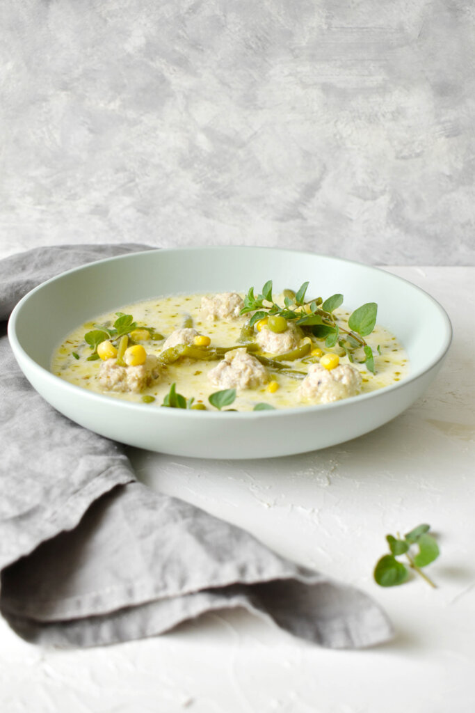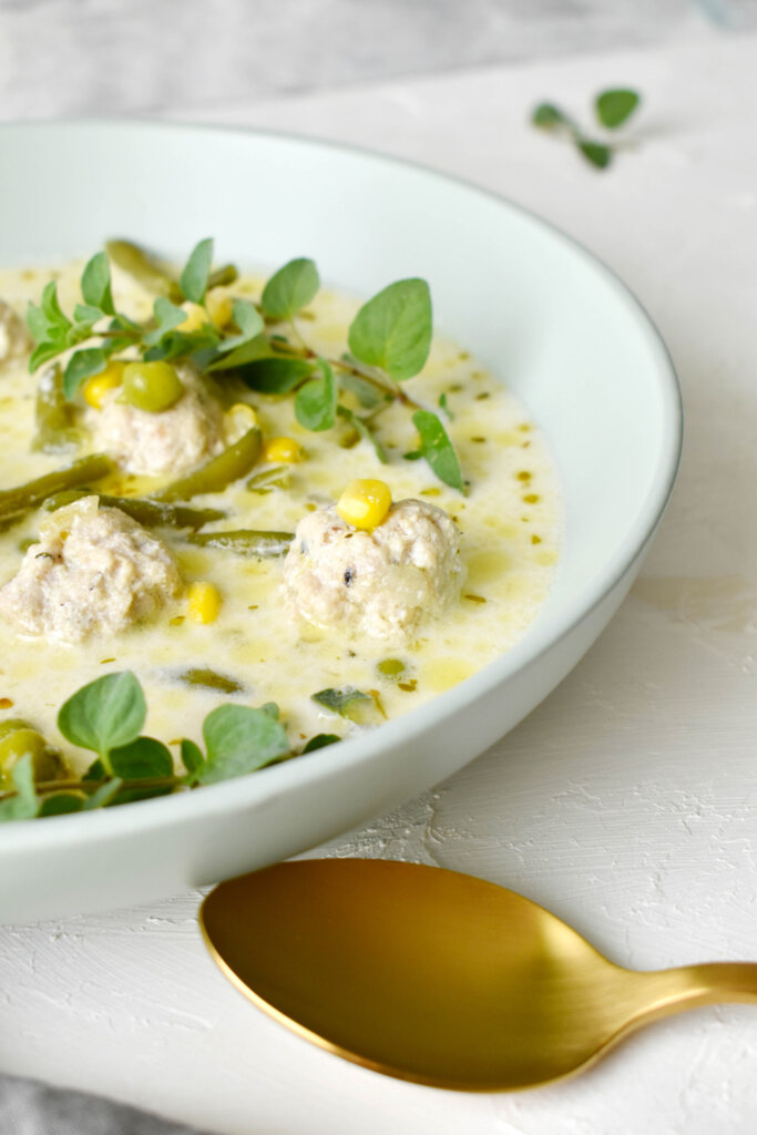 Kétségtelen, hogy nyár a hideg levesek időszaka, azonban ezt a meleg levest nyáron is érdemes kipróbálnod! Az oregánóval és fokhagymával készített húsgombócok olaszos ízt adnak neki, de a mediterrán életérzést még a napfényt idéző kukorica is erősíti. Ehhez pedig már csak egy kis frissesség kell, amit az üde zöld szín biztosít benne a zöldbabbal és a zöldborsóval. Amit pedig én kifejezetten imádok a nyári levesekben az a könnyedség. Alacsony kalóriatartalma miatt ez a fitnesz húsgombócleves vacsorára is kitűnő választás.