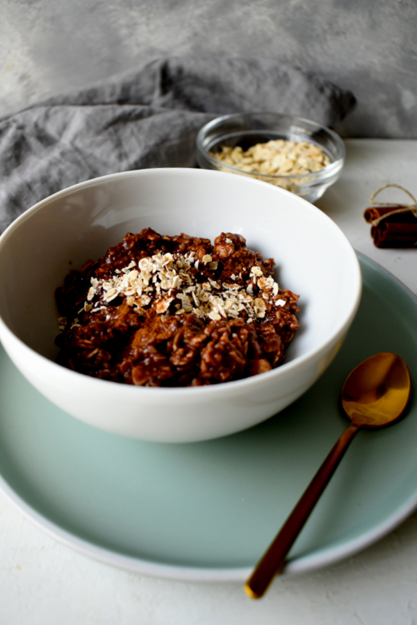 My breakfast of oats, which I pour almond milk over and mix with high-cocoa cocoa powder, a pinch of cinnamon, and birch sugar, is a treat that I need to start my day off right. The fiber in it supports metabolic processes, the fat content of cocoa provides energy, cinnamon is a tiny fat burner, and almond milk supposedly contains calcium (but I wouldn’t be so sure about that).