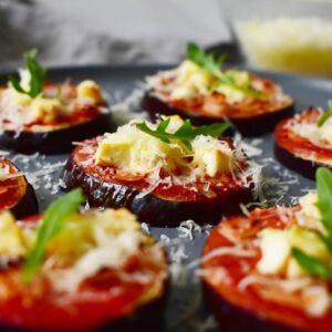 A padlizsánt mosd meg és szeleteld ujjnyi vékonyra. Tedd egy sütőpapírral bélelt tepsire, locsold meg mindkét oldalát citromlével és olívaolajjal, majd sózd meg.